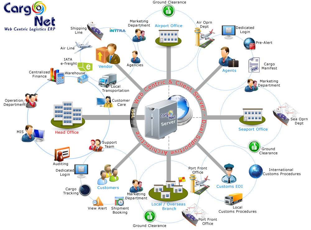 CargoNet functions at different segments, providing functionality required for each level which are independent as well as interdependent on the other segments of the Supply Chain System. This includes Freight Forwarders, CHAs, Transporters, Overseas Agents, Shipper, Consignee, Ports etc. CargoNet is a complete Framework of Solutions for the entire Supply Chain system. It pieces together all the parameters of the Supply chain into a single Entity