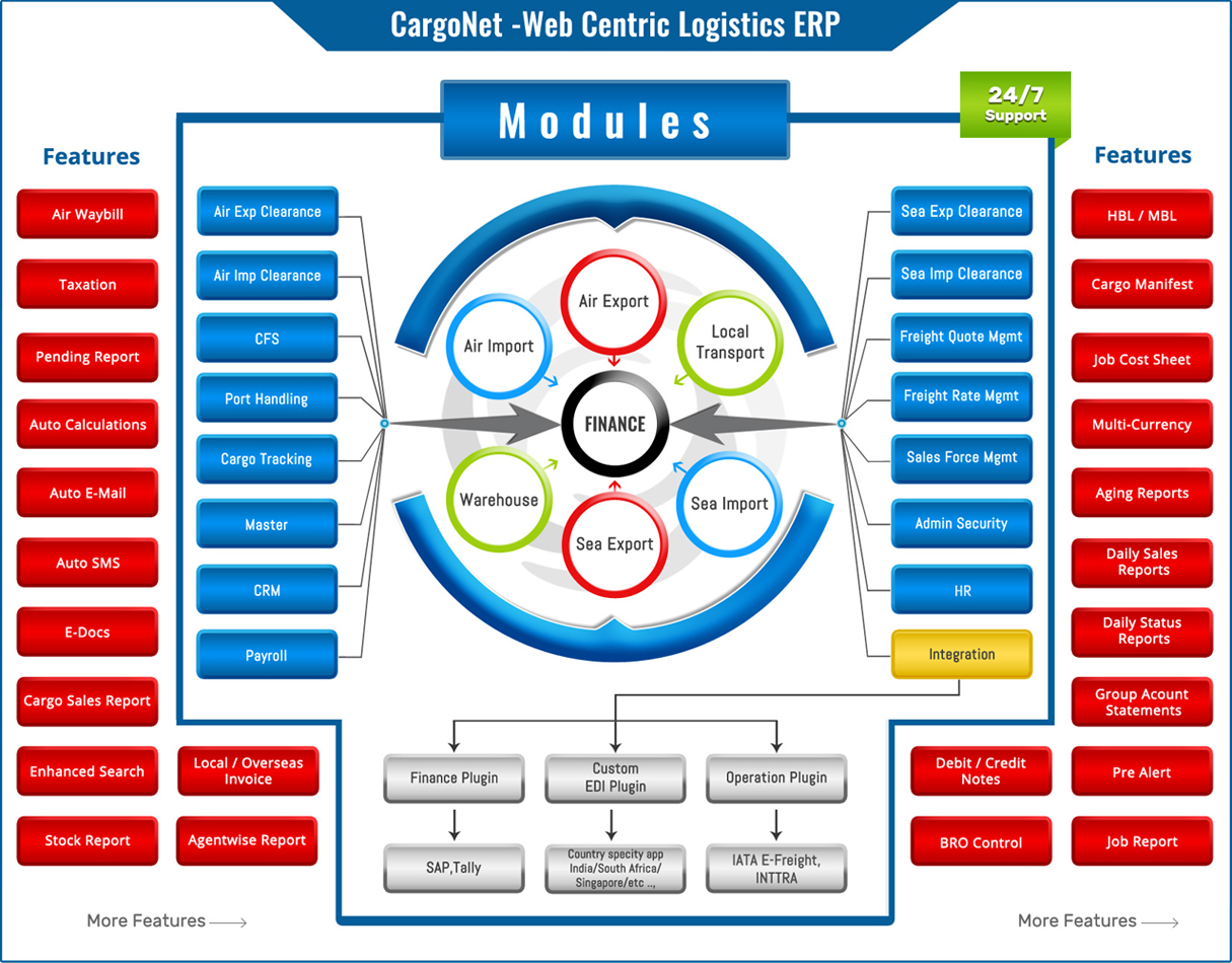 Cargo Net is a complete ERP for Freight Forwarding and CHA Community which is a single centralized framework to integrate and automate all Operational and Financial processes for a Logistics Firms , with the aim of increasing operational efficiency and improving the accessibility and flow of information across all departments and Branches. Availability of timely and Accurate Shipping Information to Customers, Overseas Agents. Powered by the innovative concepts like Auto e-mailing, Auto SMS, e-Docs and much more… Cargo Net enables organizations to respond and adapt quickly to the changing marketplace and business environment in a more efficient and Customer friendly manner.